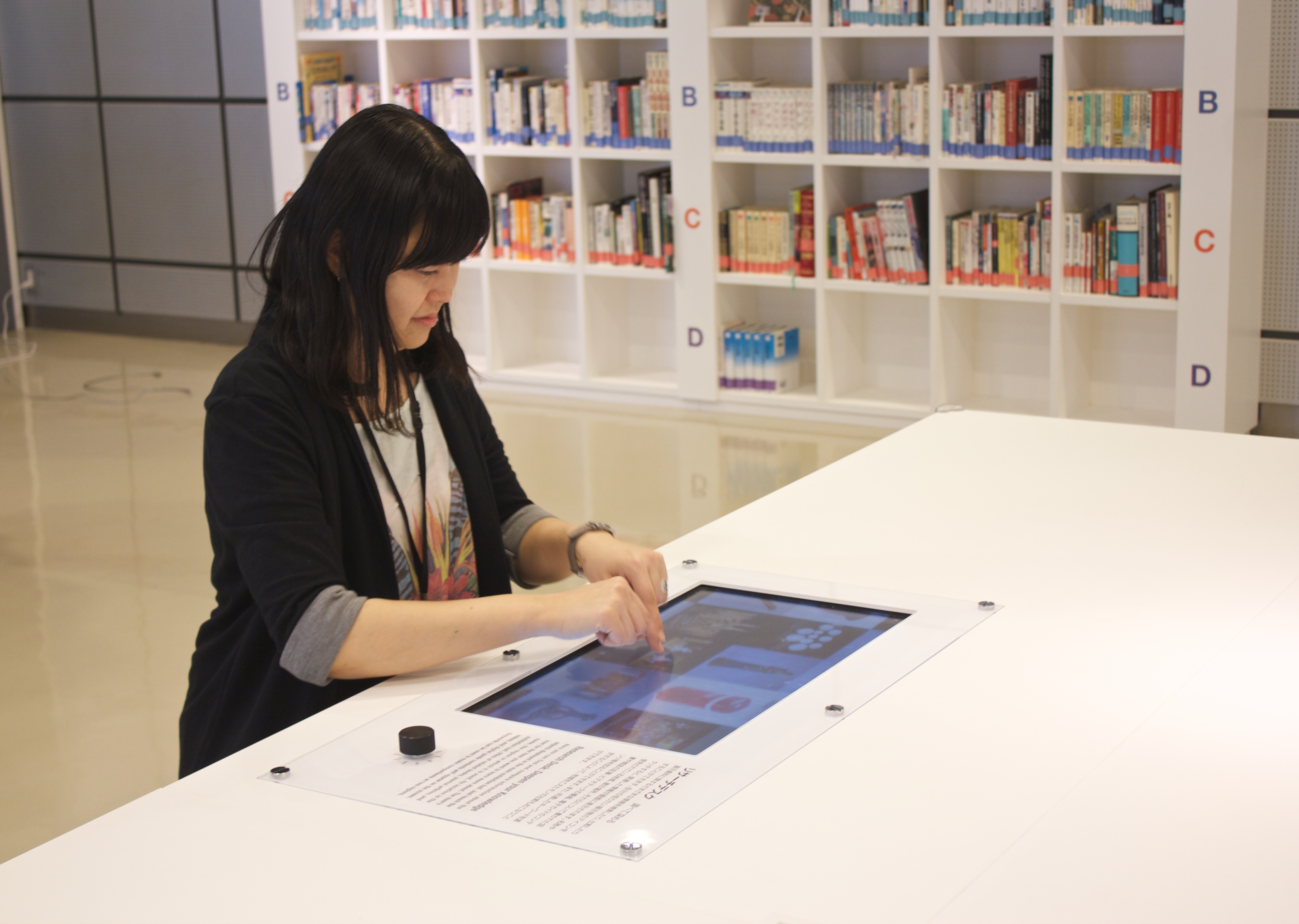 Demonstration of the Digital card cabinet, we’ve created for the National Museum of Ethnology in Osaka Japan.